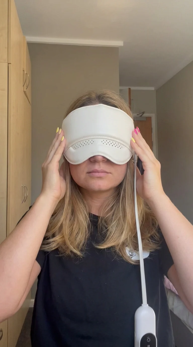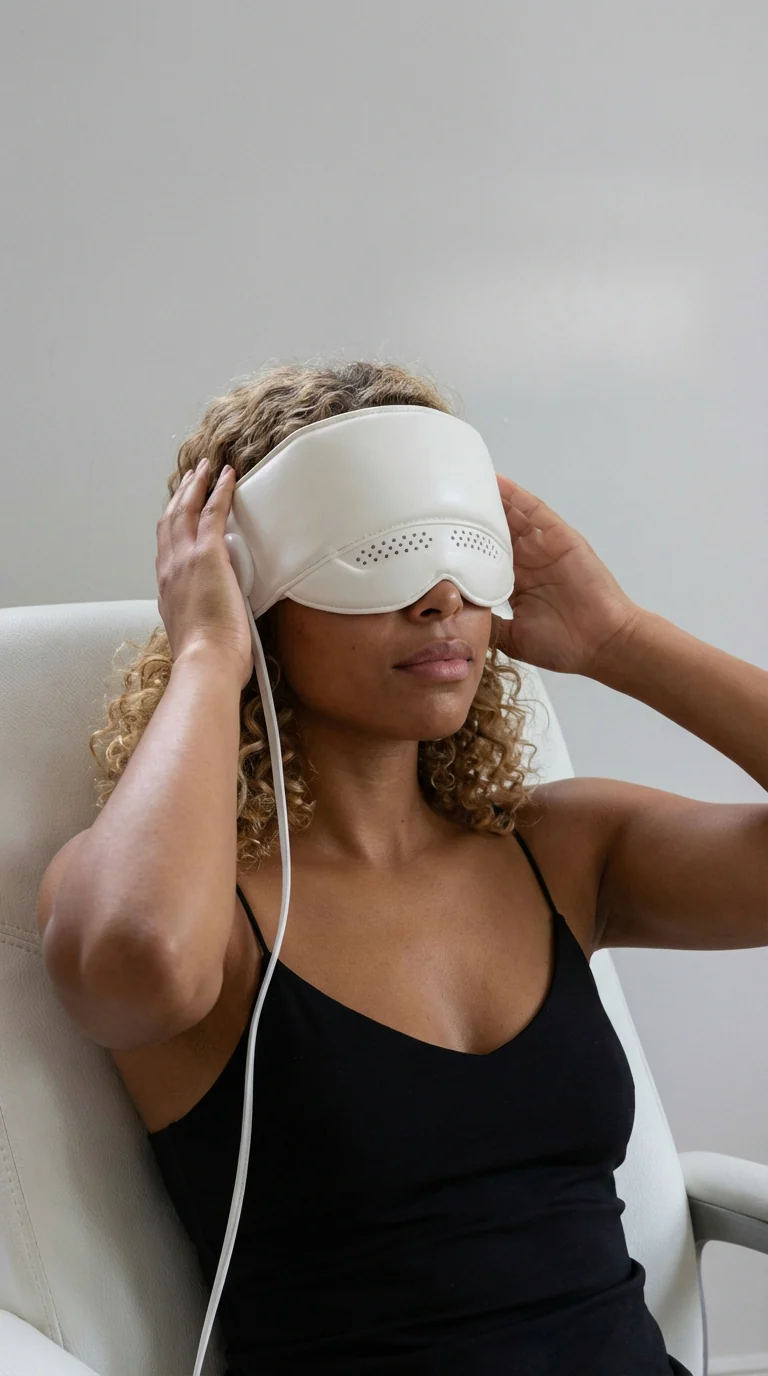 Yes. The device covers your eyes completely, blocks harsh light, and targets the tension zones that cause the “knife-behind-the-eyes” feeling. Users report softer light sensitivity and reduced forehead pressure even on tough days.