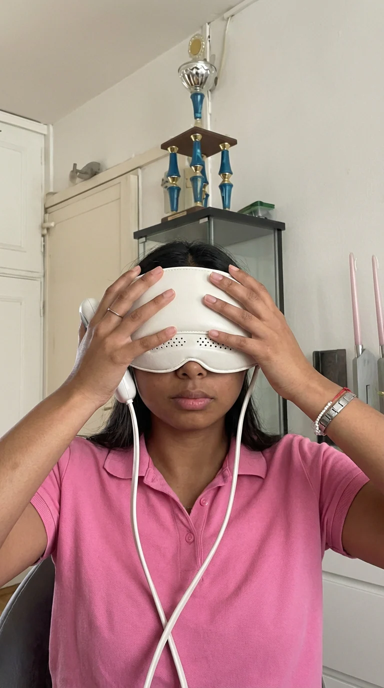 Yes. Our device uses natural methods — heat therapy and air-compression — with no medication, no side effects, and no long-term risks. You can use it daily for relaxation, stress relief, eye strain, or before bed.